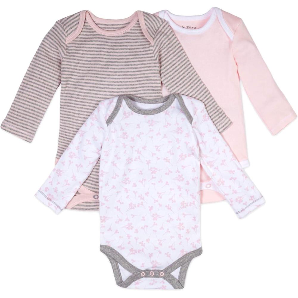 A-Bee-C Long Sleeve Organic Baby Bodysuits 3 Pack(Dusty Dandelions)