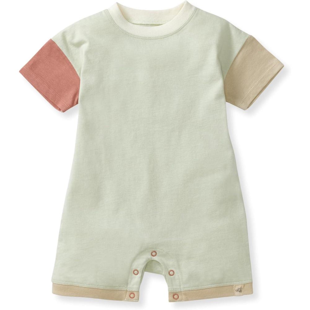 Burt’s Bees Baby baby-boys Jumpsuit, 100% Organic Cotton One-piece Romper Short Or Long Sleeve Shortall Coverall(Green Wash Color Blocked)