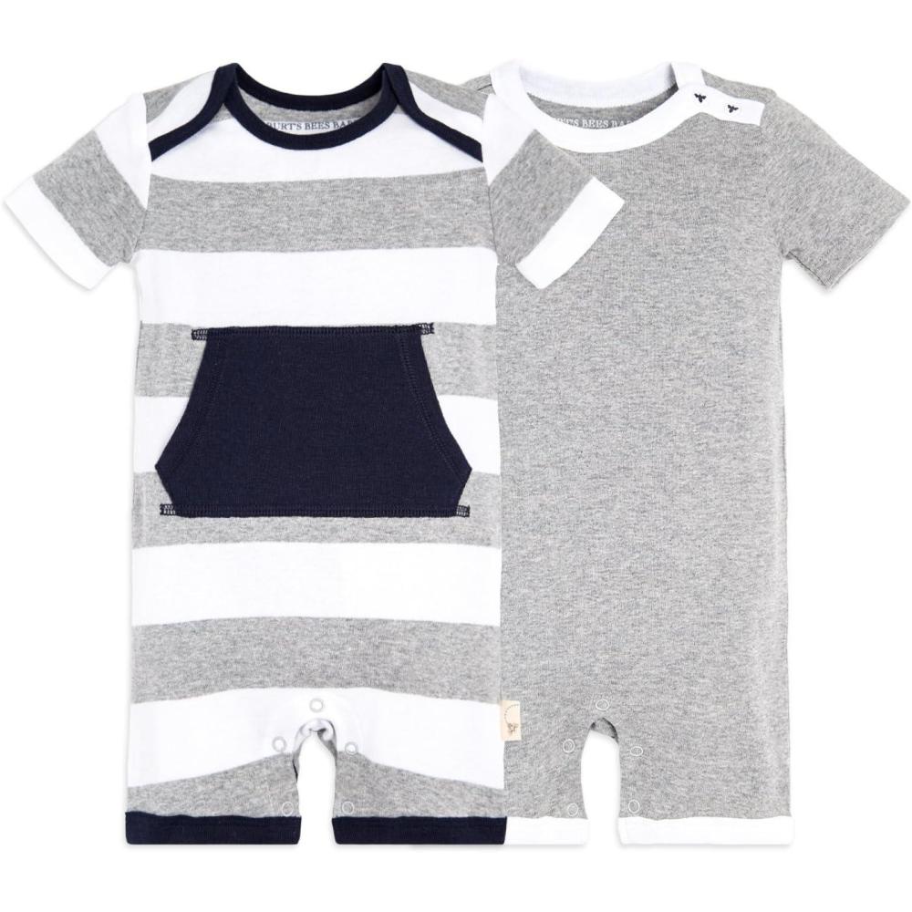 Burt’s Bees Baby Baby Boys Rompers, 100% Organic Cotton One-piece Coverall and Layette 2-pack Set(Heather Grey Pocket)