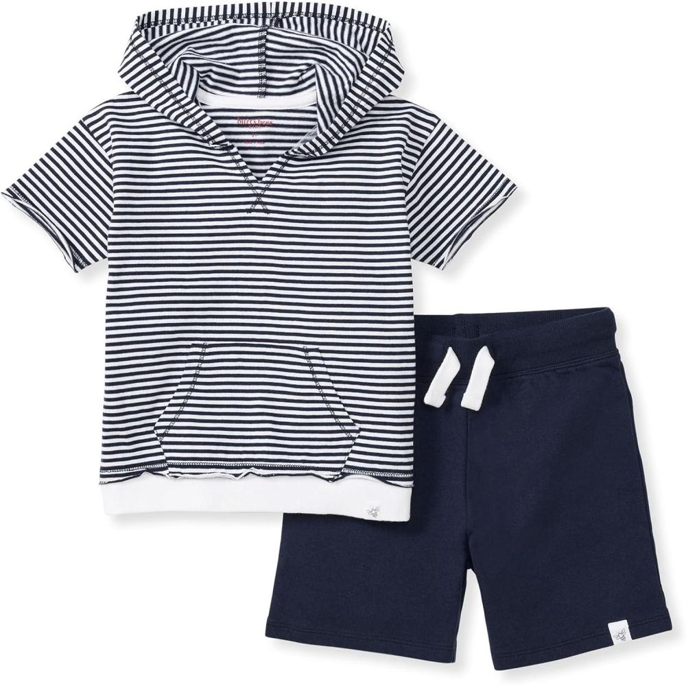 Burt’s Bees Baby baby-boys Short Sleeve Shirt and Pant Set, Top & Bottom Outfit, 100% Organic Cotton(Classic Stripe)