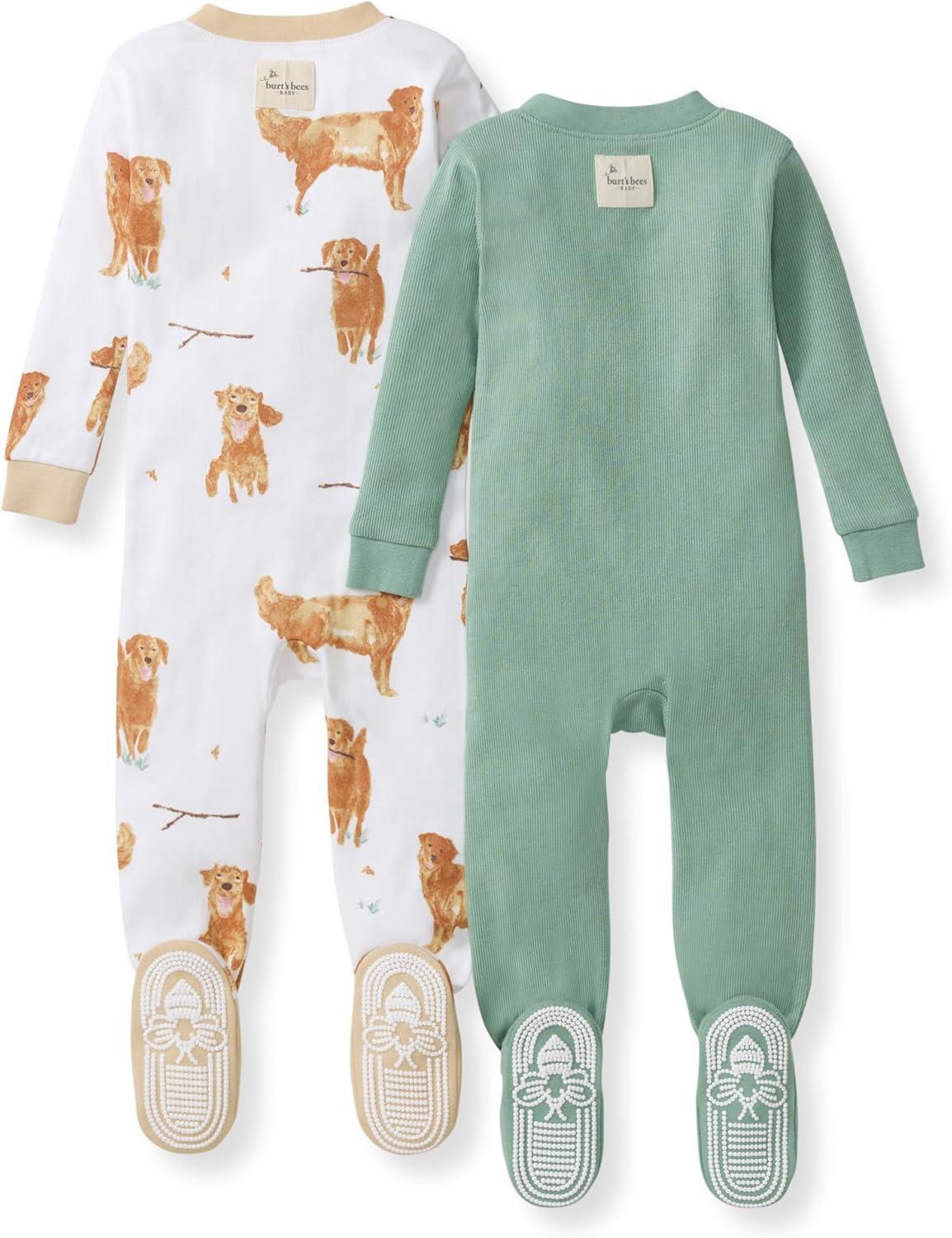 Burt’s Bees Baby baby-boys Sleeper Pjs, 100% Organic Cotton, One-piece Footie, Zip Up Jumpsuit, Snug Fit Pajamas(Golden Retriever)