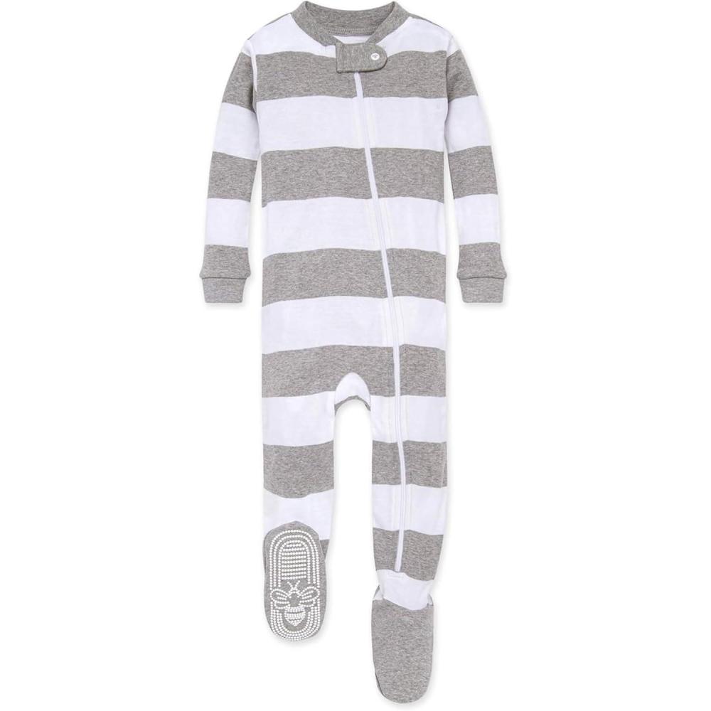 Burt’s Bees Baby baby-boys Sleeper Pjs, 100% Organic Cotton, One-piece Footie, Zip Up Jumpsuit, Snug Fit Pajamas(Heather Grey Rugby Stripe)