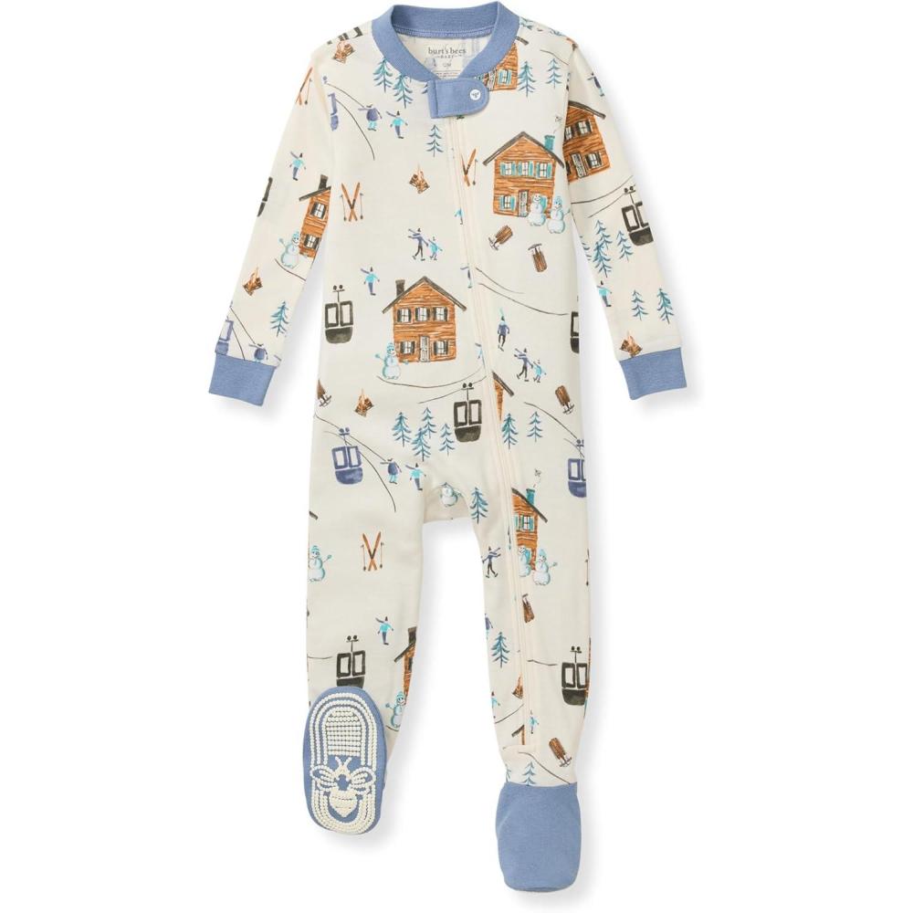 Burt’s Bees Baby baby-boys Sleeper Pjs, 100% Organic Cotton, One-piece Footie, Zip Up Jumpsuit, Snug Fit Pajamas(Out in the Alps)