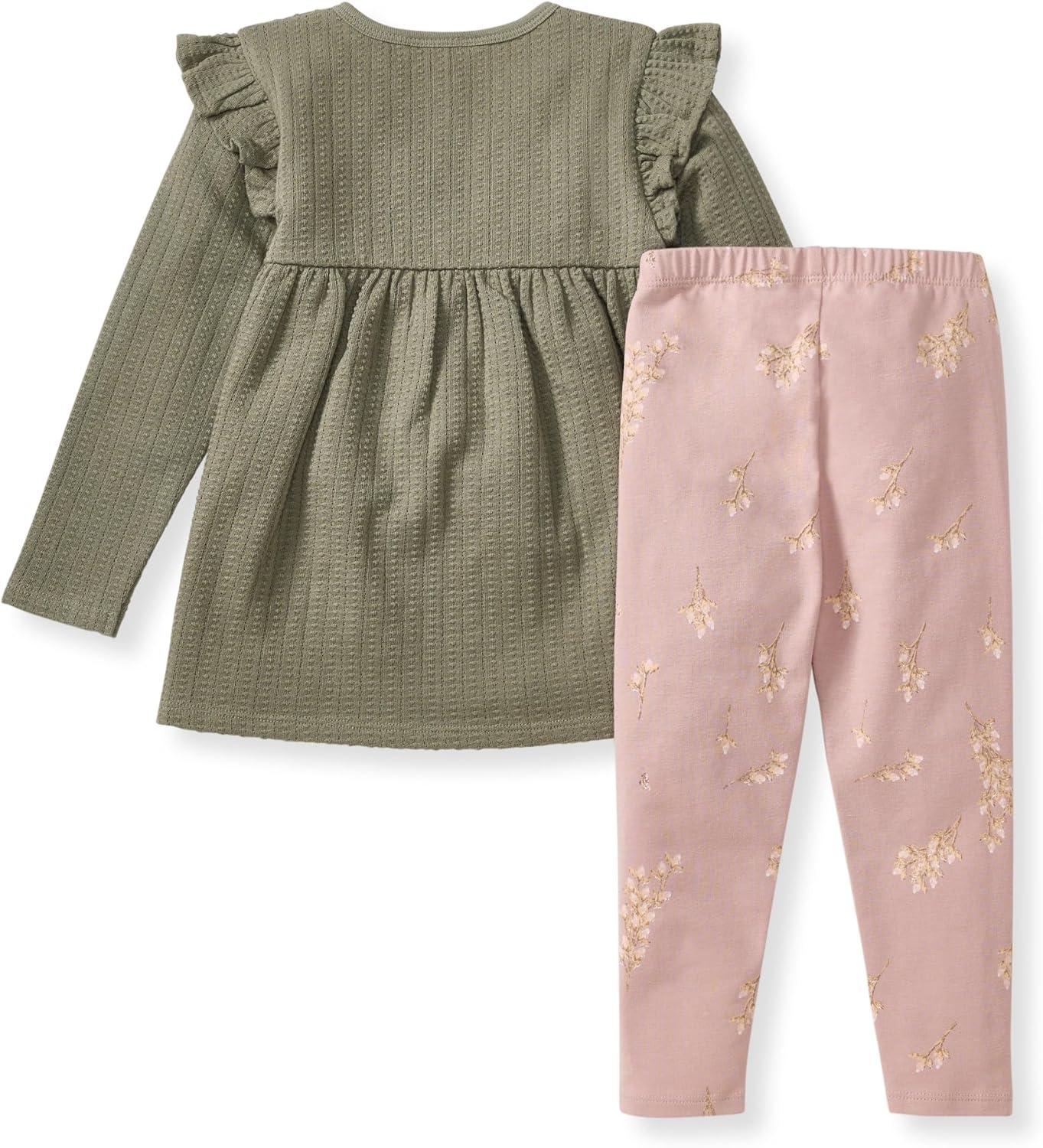Burt’s Bees Baby Baby Girls Long Sleeve Top and Pant Set, 100% Organic Cotton Outfit(Budding Beauty)