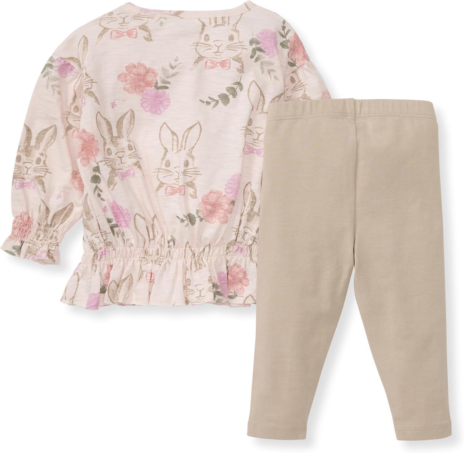 Burt’s Bees Baby Baby Girls Long Sleeve Top and Pant Set, 100% Organic Cotton Outfit(Bunny Floral Set)