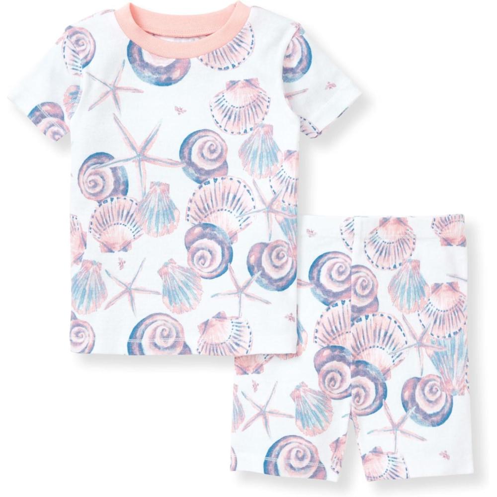 Burt’s Bees Baby baby-girls Pjs, Short Sleeve Tee and Shorts 2-piece Pajama Set, 100% Organic Cotton(Swirly Seashells)