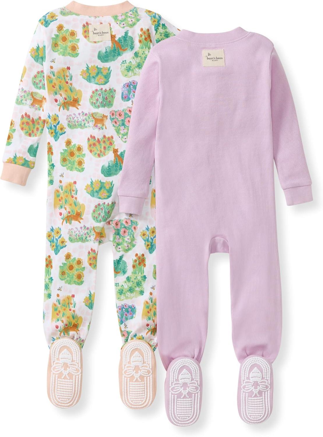 Burt’s Bees Baby Baby Girls Sleeper Pajamas, 100% Organic Cotton, One-piece PJs, Diagonal Zip Up Jumpsuit, Snug Fit Footie(Garden Paths)