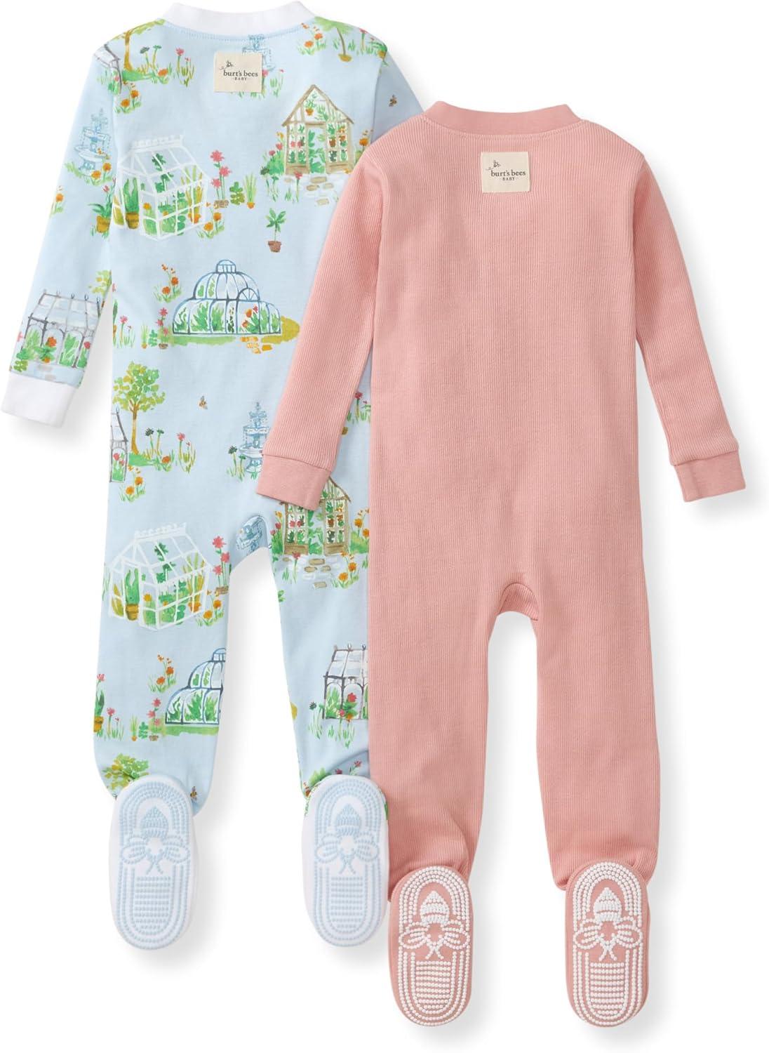 Burt’s Bees Baby Baby Girls Sleeper Pajamas, 100% Organic Cotton, One-piece PJs, Diagonal Zip Up Jumpsuit, Snug Fit Footie(Green Houses)