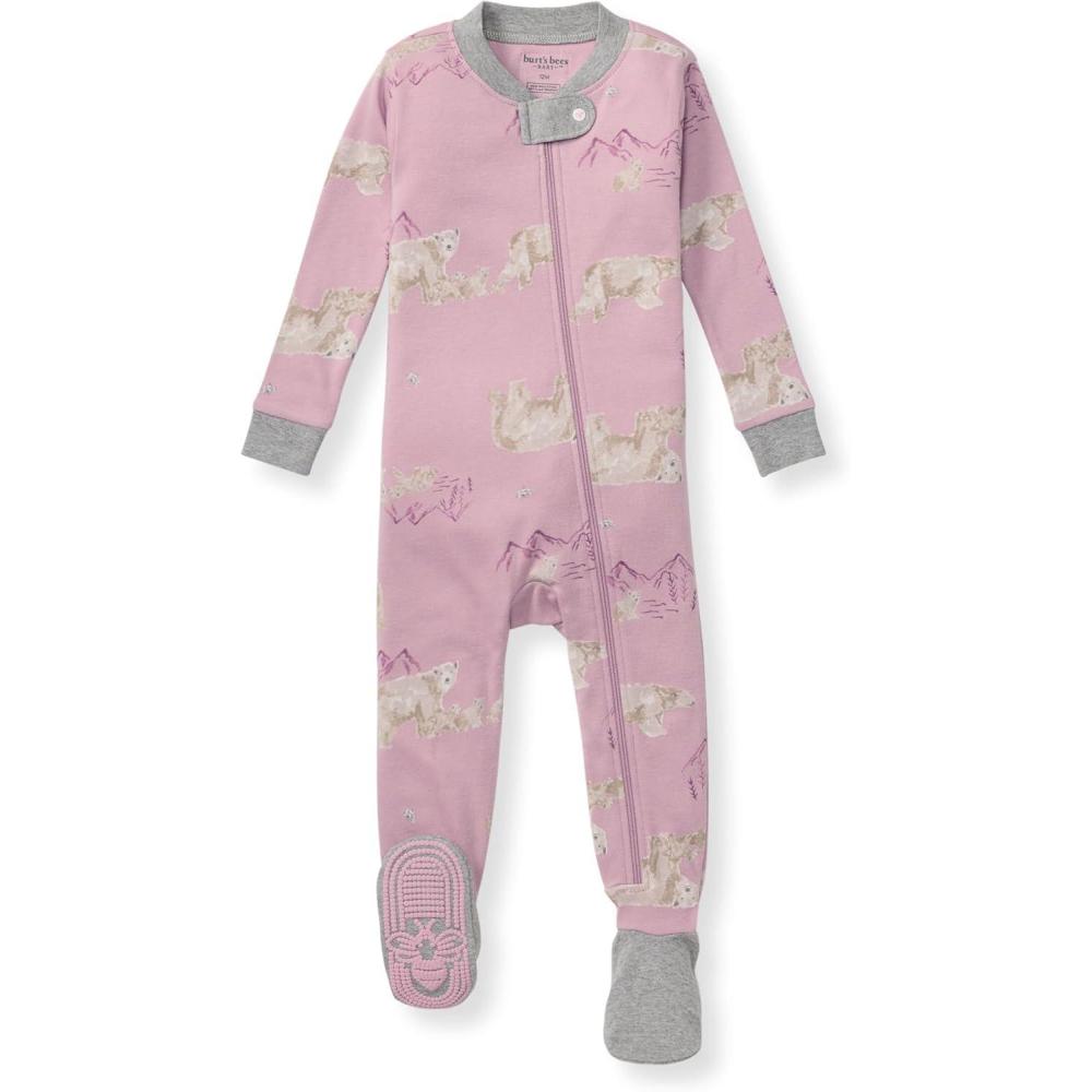 Burt’s Bees Baby Baby Girls Sleeper Pajamas, 100% Organic Cotton, One-piece PJs, Diagonal Zip Up Jumpsuit, Snug Fit Footie(Polar Mountain Pink)