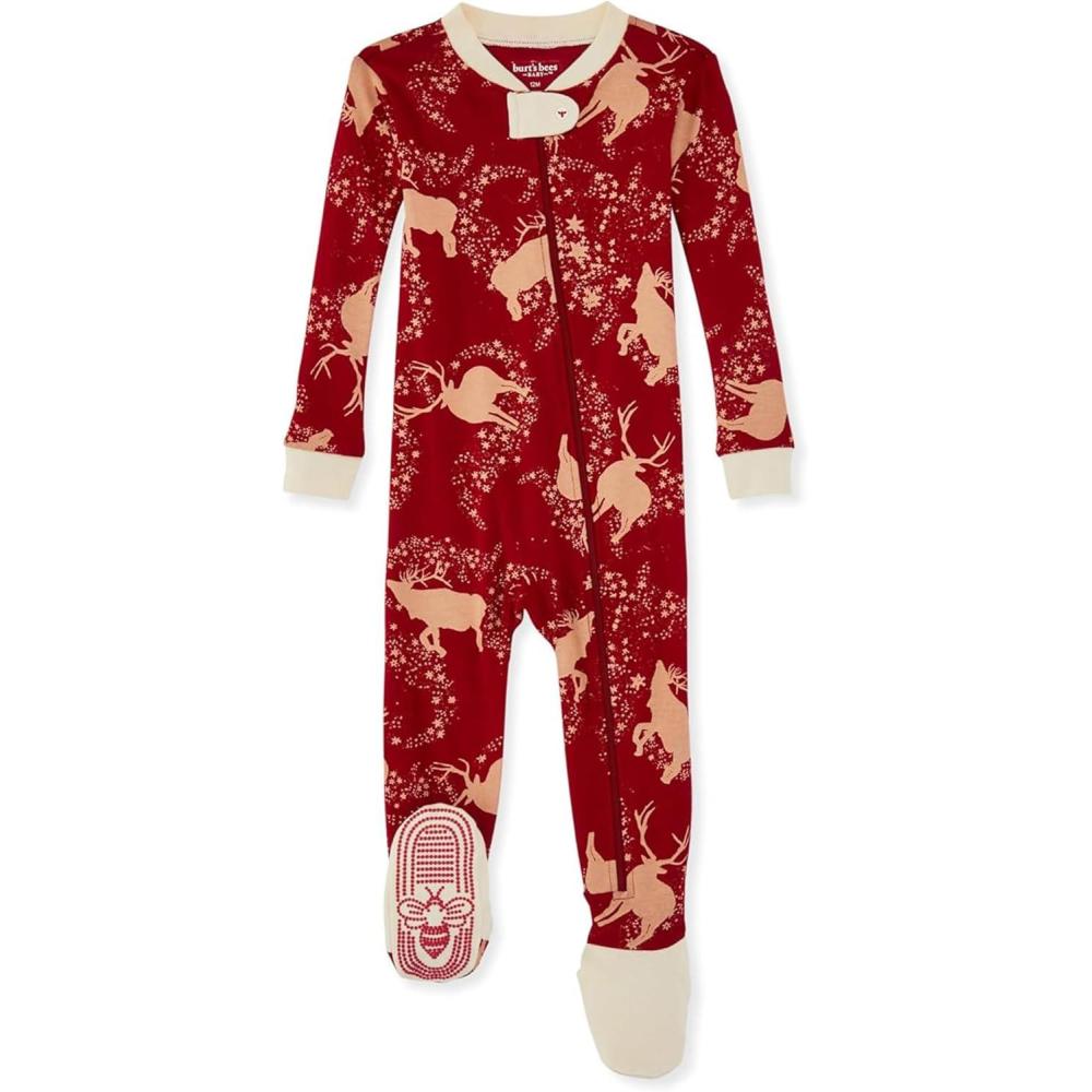 Burt’s Bees Baby Baby Girls Sleeper Pajamas, 100% Organic Cotton, One-piece PJs, Diagonal Zip Up Jumpsuit, Snug Fit Footie(Starry Reindeer)