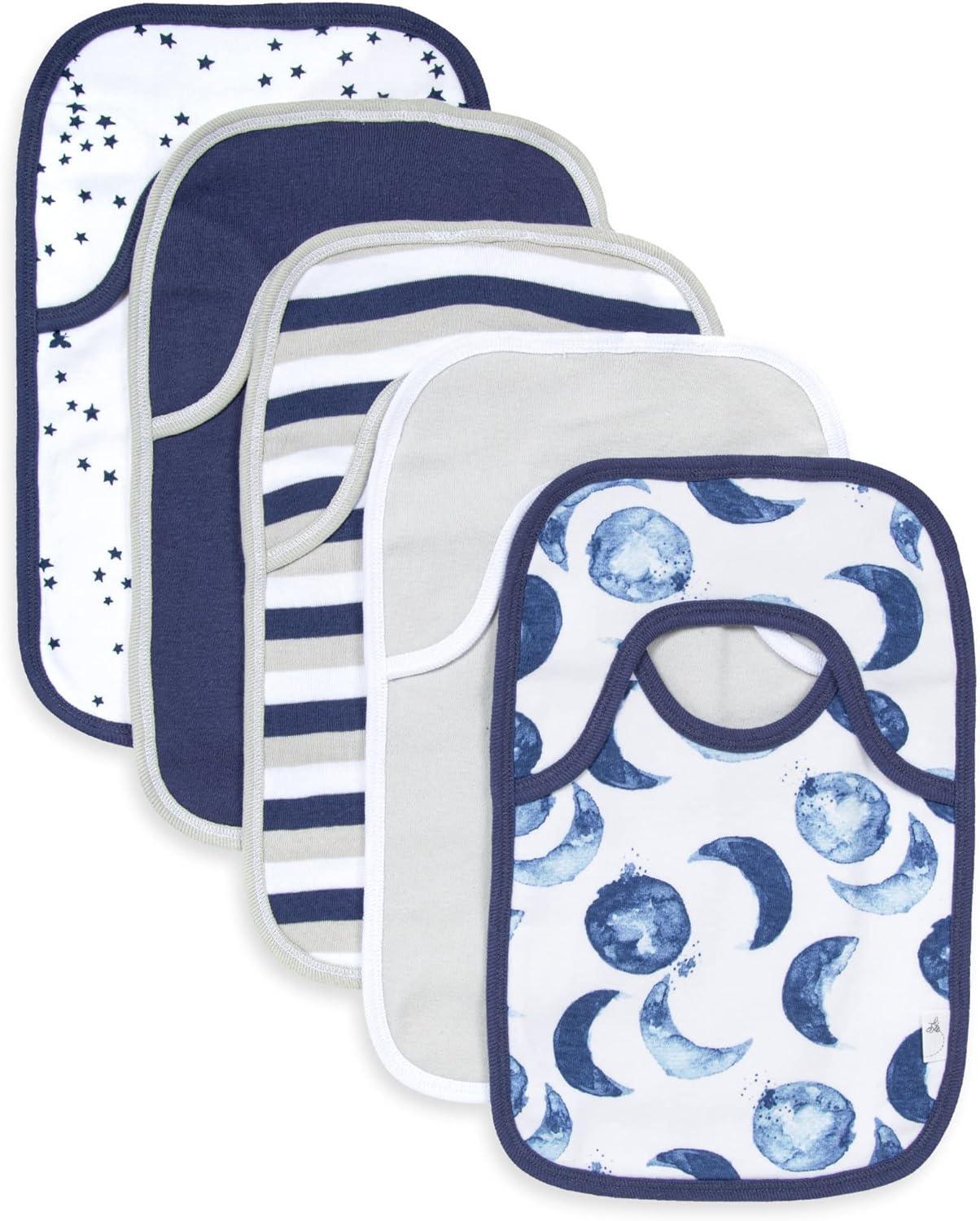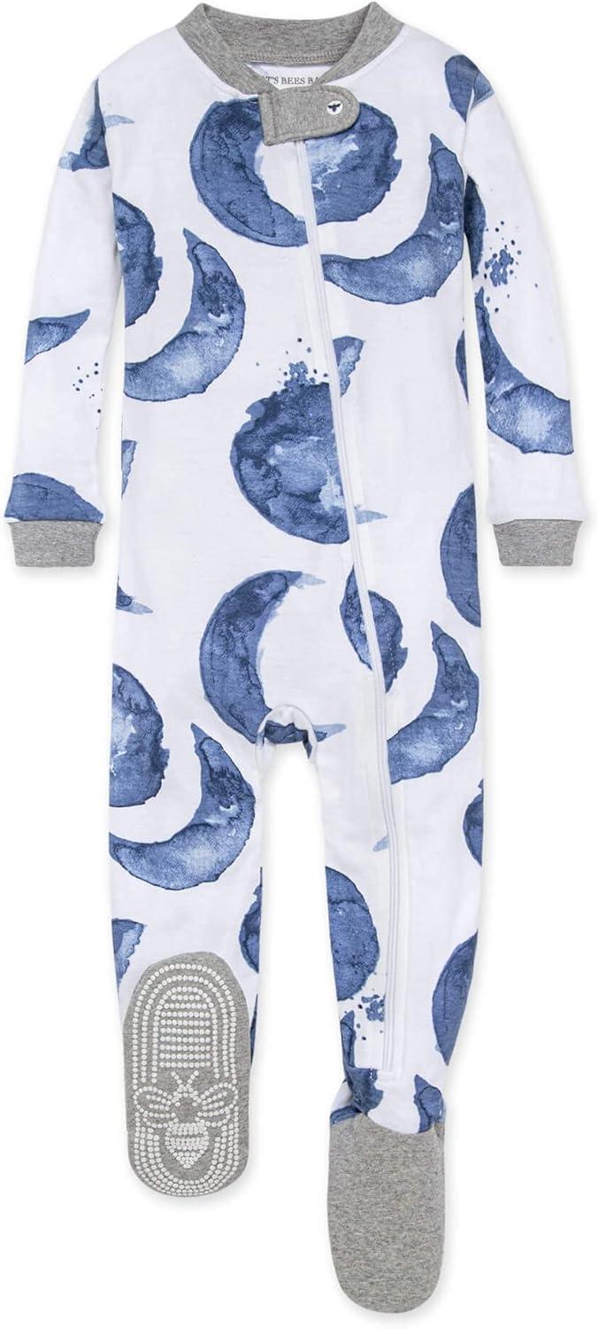Burt’s Bees Baby baby-girls Zip-up Footed Sleeper Pj & Set of Bibs Gift Bundle, 100% Organic Cotton(Hello Moon)