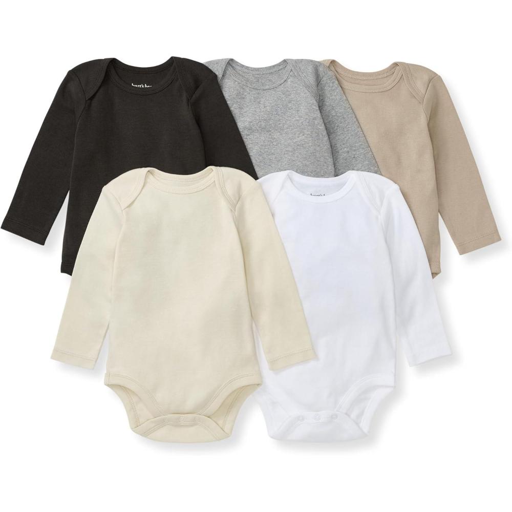 Burt’s Bees Baby Bodysuits, Short Sleeve and Long Sleeve One-Pieces, 100% Organic Cotton, Pack of 5(Ash Long Sleeve)