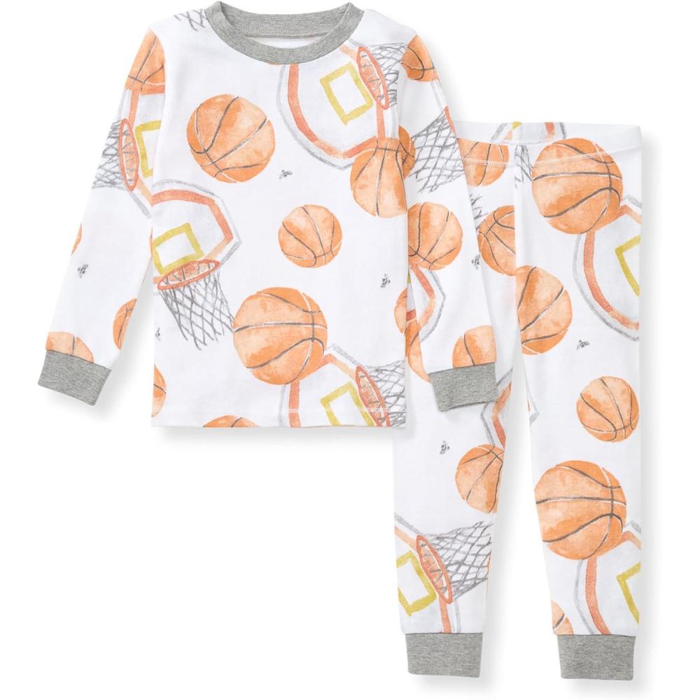Burt’s Bees Baby Boys’ 2-Piece Long Sleeve Tee and Pants Organic Cotton Pajama Set(Basketball)