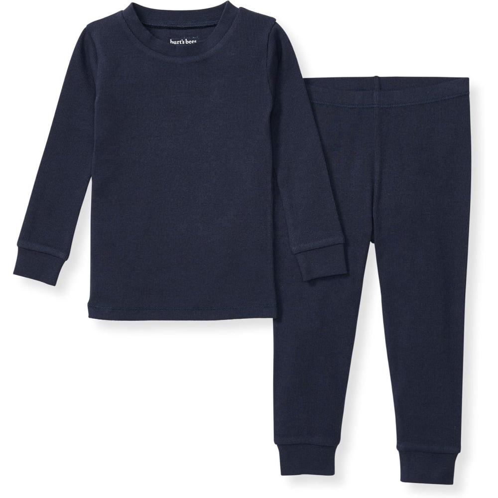 Burt’s Bees Baby Boys’ 2-Piece Long Sleeve Tee and Pants Organic Cotton Pajama Set(Midnight Solid Rib)