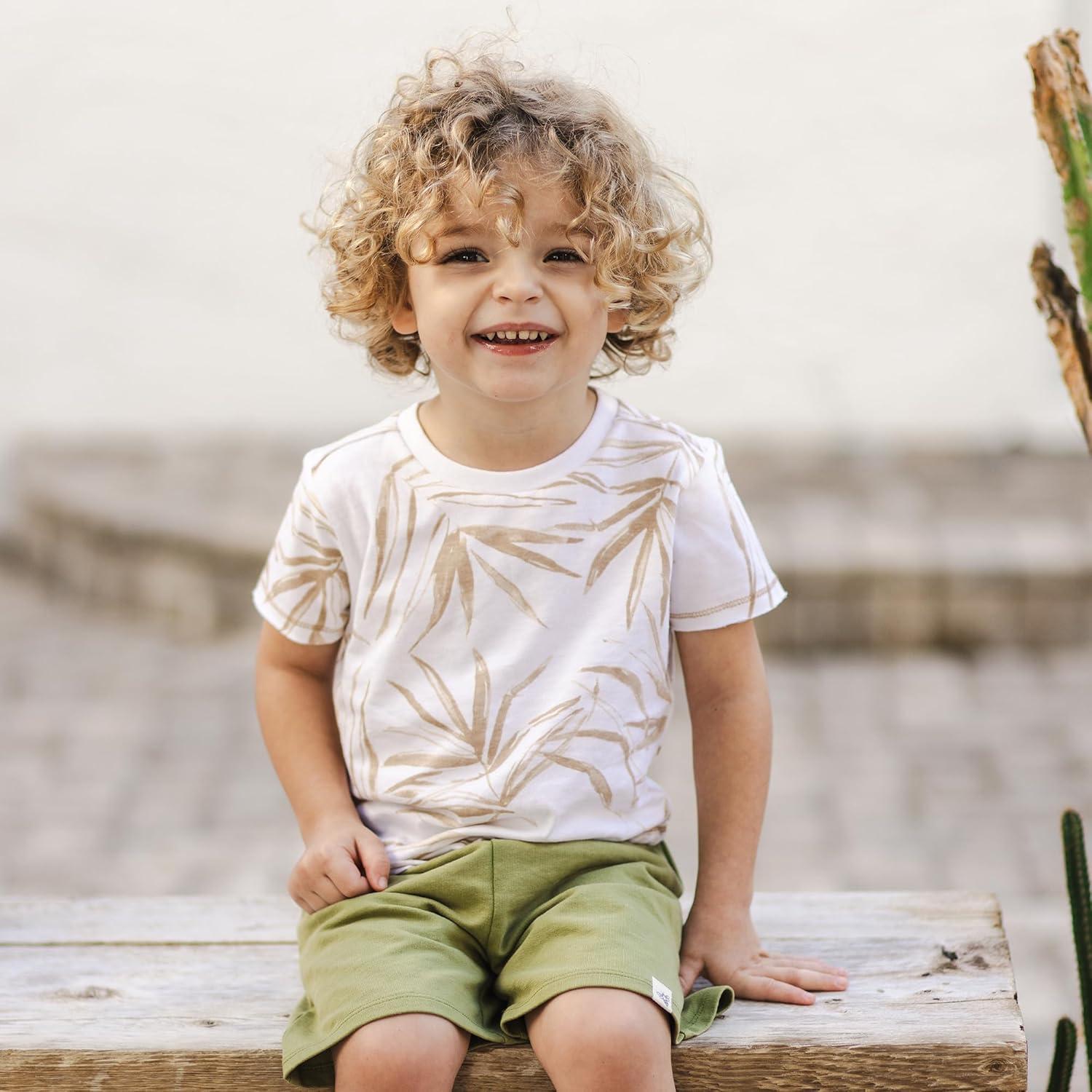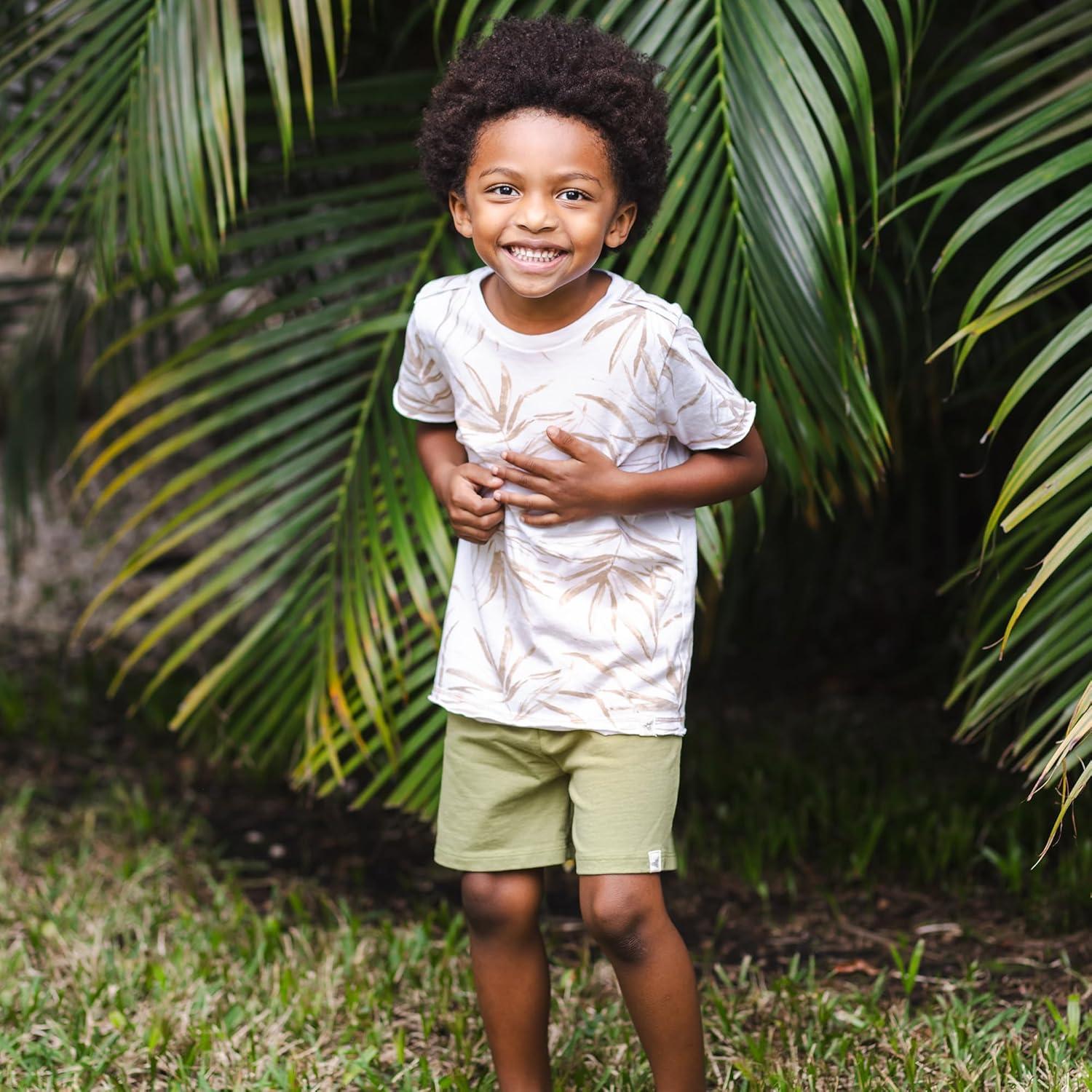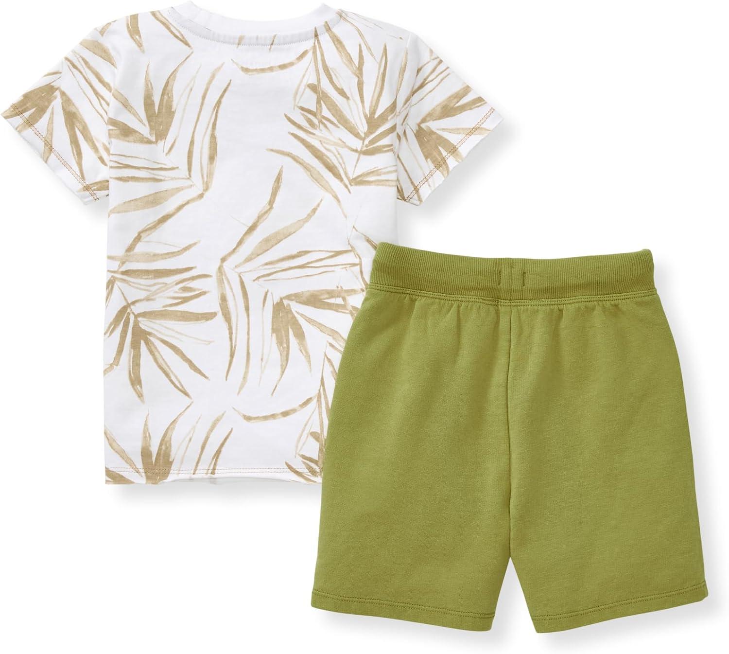 Burt’s Bees Baby Boys Shirt and Pant Set, Top & Shorts Outfit Bundle, 100% Organic Cotton(Shady Palms)