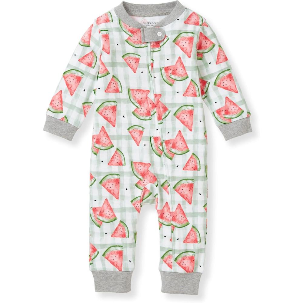 Burt’s Bees Baby Boys Sleep and Play PJs, 100% Organic Cotton One-Piece Zip Front Romper Jumpsuit Pajamas(Mini Watermelon Check)