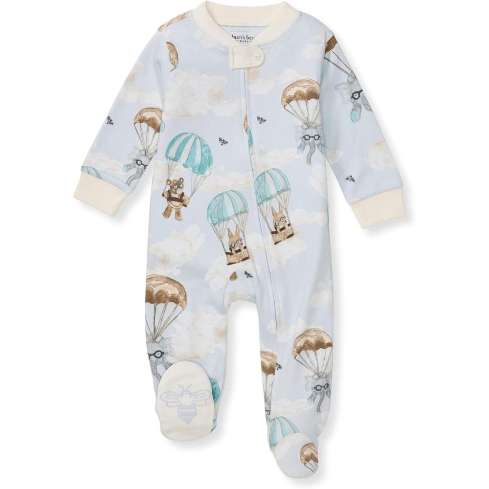 Burt’s Bees Baby Boys Sleep and Play PJs, 100% Organic Cotton One-Piece Zip Front Romper Jumpsuit Pajamas(Parachute Pals Blue)