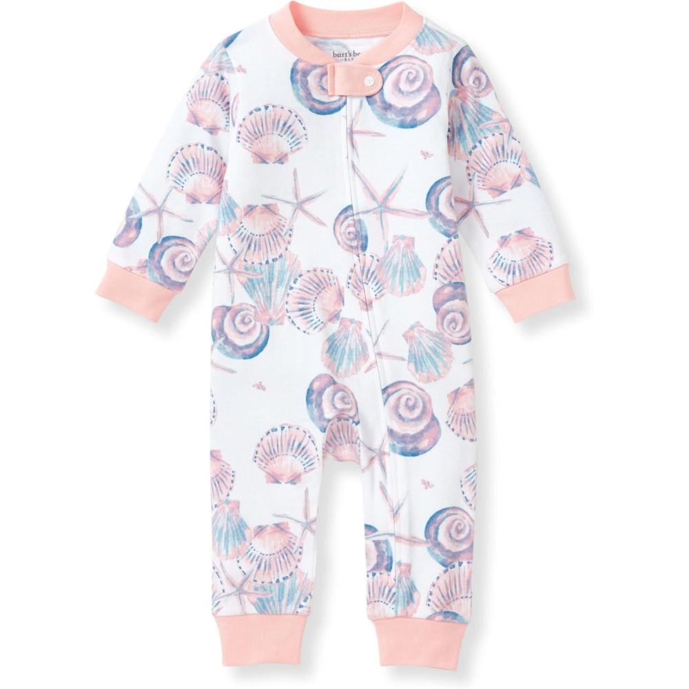 Burt’s Bees Baby Boys Sleep and Play PJs, 100% Organic Cotton One-Piece Zip Front Romper Jumpsuit Pajamas(Swirly Seashells)
