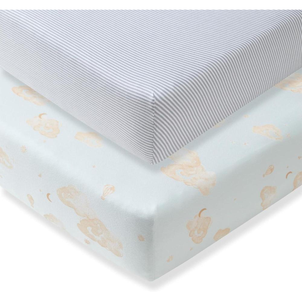 Burt’s Bees Baby Essential Organic Cotton Fitted Crib Sheet, Breathable for Boy Girl Standard Crib & Toddler Mattresses(Good Night Sky Blue 2-pk)