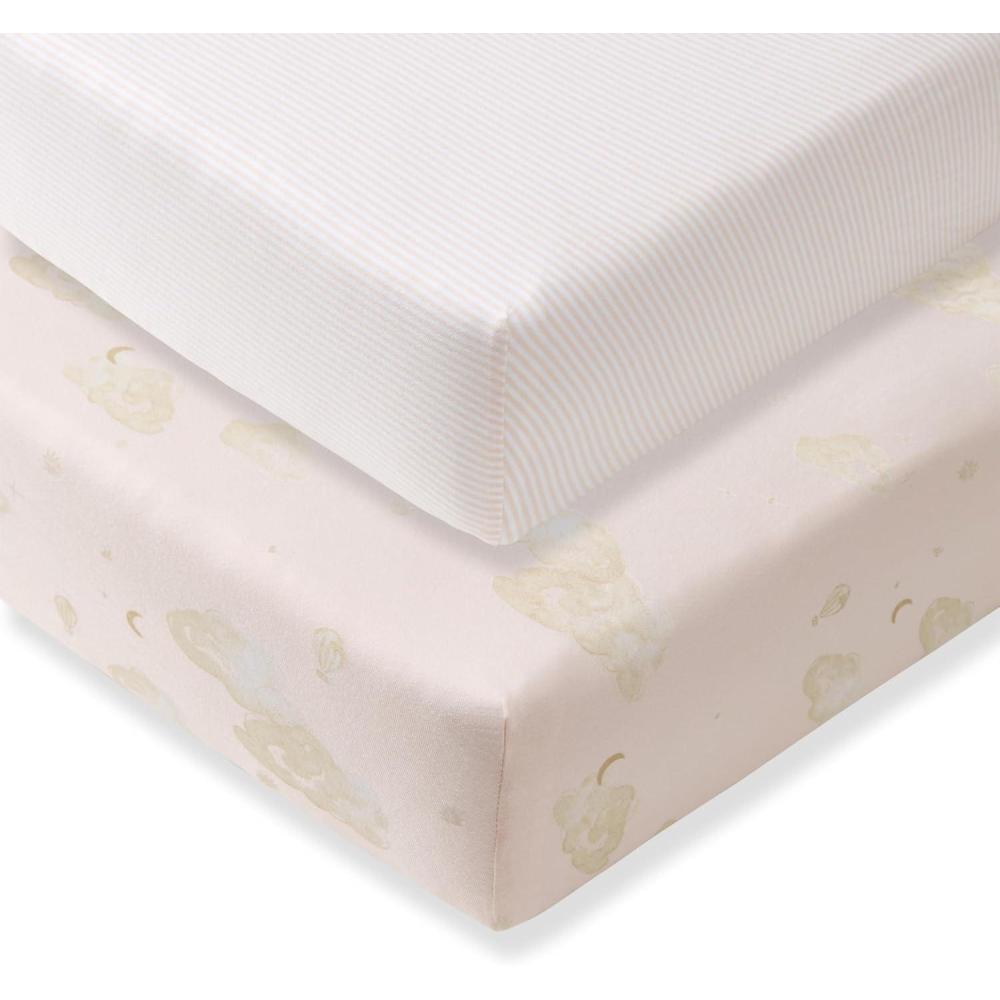Burt’s Bees Baby Essential Organic Cotton Fitted Crib Sheet, Breathable for Boy Girl Standard Crib & Toddler Mattresses(Good Night Sky Pink 2-pk)
