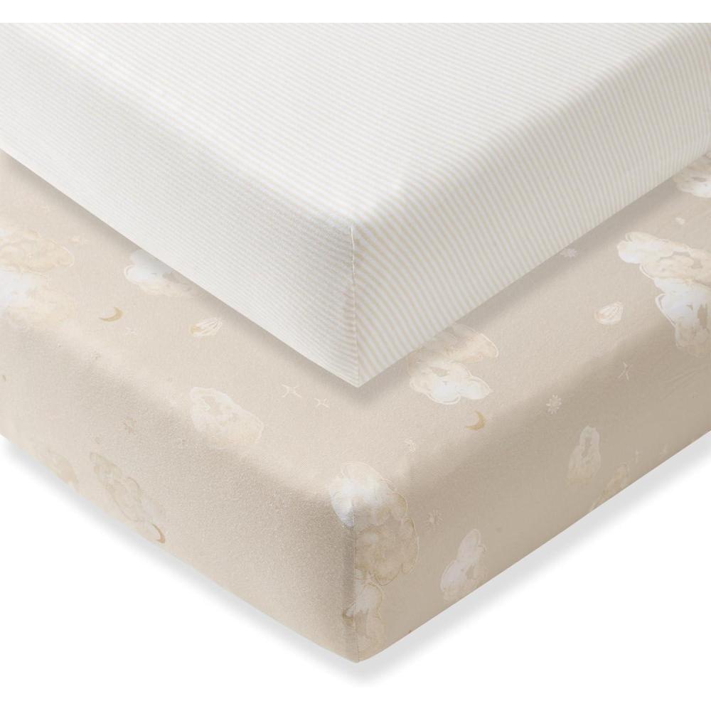 Burt’s Bees Baby Essential Organic Cotton Fitted Crib Sheet, Breathable for Boy Girl Standard Crib & Toddler Mattresses(Good Night Sky Stone 2-pk)