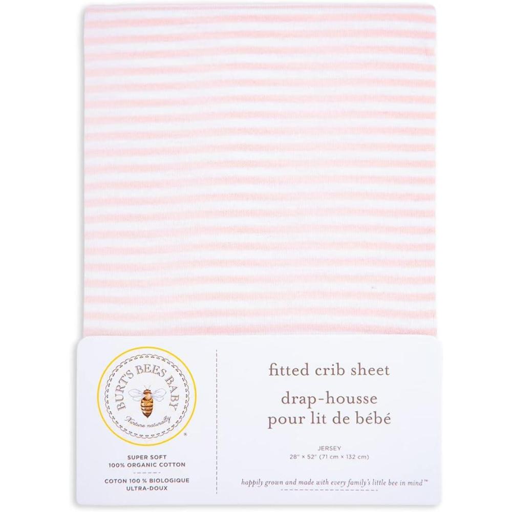 Burt’s Bees Baby – Fitted Crib Sheet, Girls Boys & Unisex 100% Organic Cotton Crib Sheet for Standard Crib & Toddler Mattresses(Pink Stripe)