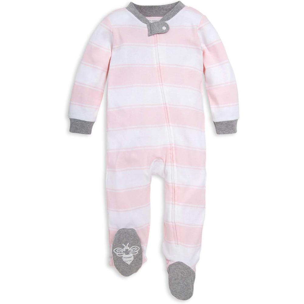 Burt’s Bees Baby Girls’ Organic Cotton Sleep and Play Footed Pajamas(Pink Rugby Stripe)