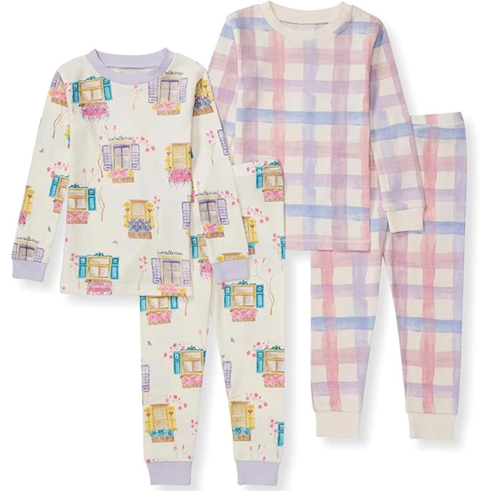 Burt’s Bees Baby Girls’ Pajamas, 2-Piece Long Sleeve Tee and Pants Organic Cotton PJ Set(Swiss Chalet 2pk)