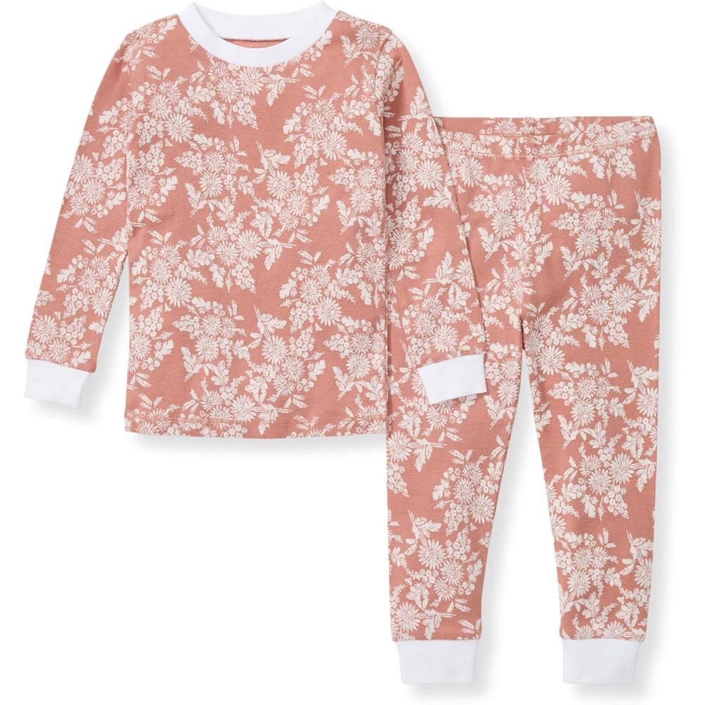 Burt’s Bees Baby Girls’ Pajamas, 2-Piece Long Sleeve Tee and Pants Organic Cotton PJ Set(Vibrant Garden)