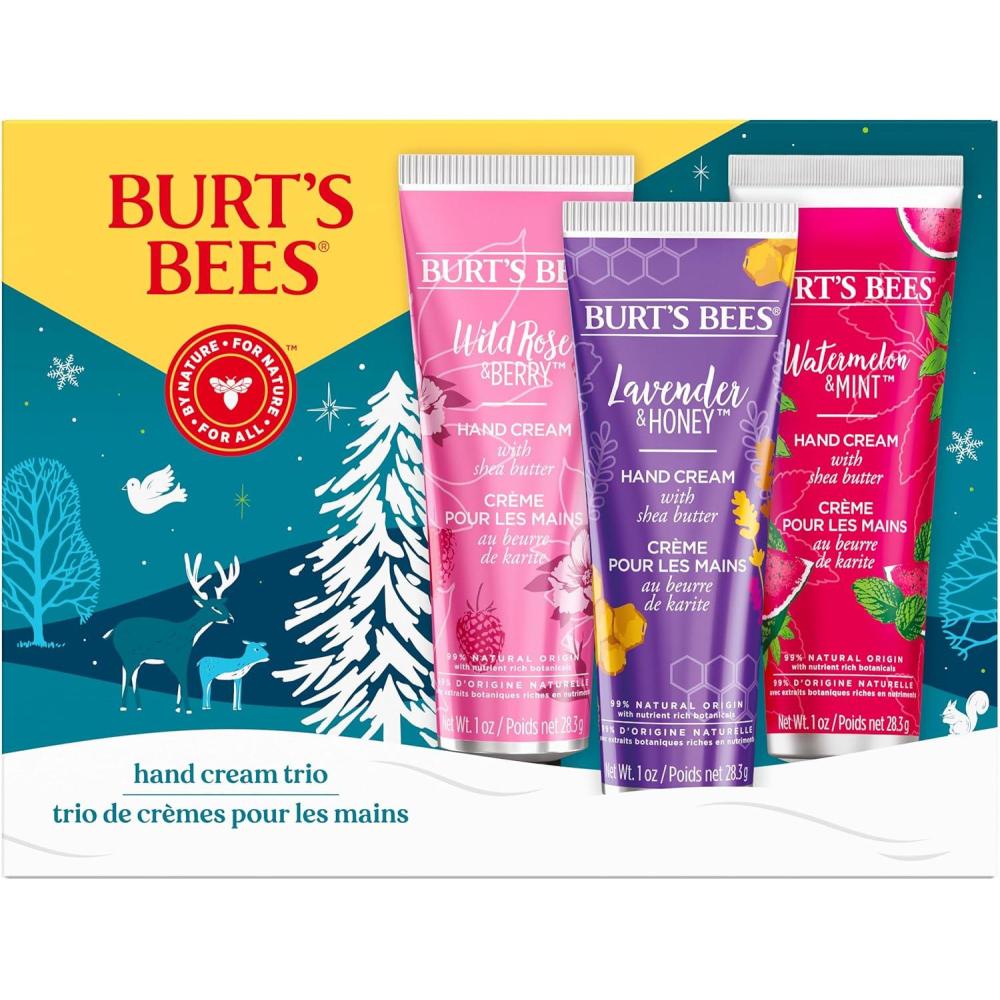 Pamper and condition her skin with Burts Bees Mama Bee Gift Set. This 3 piece gift for her includes Belly Butter to gently nourish mamas stretched skin; Leg & Foot Crme to soothe her legs and feet; and Beeswax Lip Balm to replenish dry lips. These 3 great full size products make the perfect gift for mom. Burts Bees Mama Bee Gift Set products are made with the finest ingredients from nature. Indulge her skin with these natural products formulated to help retain moisture and keep her skin soft and supple. This Burts Bees Mama Bee Gift Set is the perfect Mothers Day, baby shower or anniversary gift on your list. The giftable tin is designed to be gift ready so wrapping can be skipped. Give the gift of nourishment with Burts Bees skin care.
