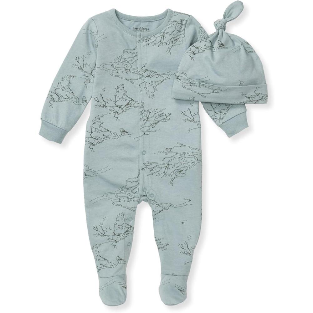 Jumpsuit, 100% Organic Cotton One-piece Outfit Coverall With Hat(Blue Birds of a Feather)