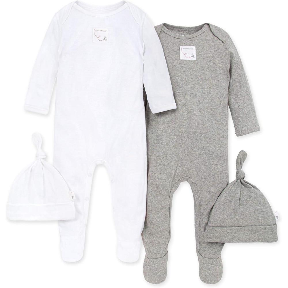 Jumpsuit, 100% Organic Cotton One-piece Outfit Coverall With Hat(Heather Grey/White 2-pk)